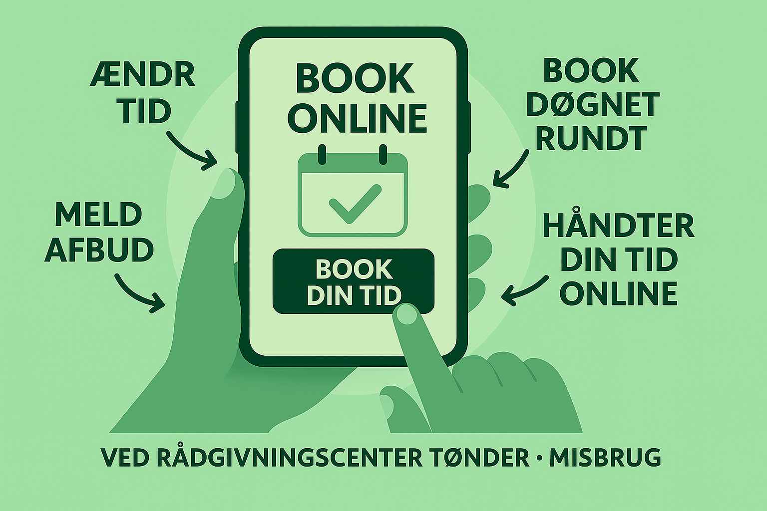 Hos Rådgivningscenter Tønder - Misbrug kan du nu booke, ændre eller melde afbud til din tid online – når det passer dig.